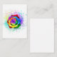 Large, blooming rose with rainbow petals on white background, painted over with splashes of colourful, bright paint. 3d