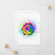 Large, blooming rose with rainbow petals on white background, painted over with splashes of colourful, bright paint. 3d