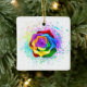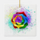 Large, blooming rose with rainbow petals on white background, painted over with splashes of colourful, bright paint. 3d