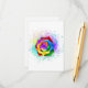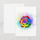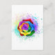 Large, blooming rose with rainbow petals on white background, painted over with splashes of colourful, bright paint. 3d