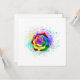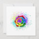 Large, blooming rose with rainbow petals on white background, painted over with splashes of colourful, bright paint. 3d