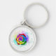 Large, blooming rose with rainbow petals on white background, painted over with splashes of colourful, bright paint. 3d