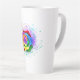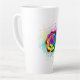Large, blooming rose with rainbow petals on white background, painted over with splashes of colourful, bright paint. 3d