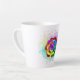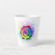Large, blooming rose with rainbow petals on white background, painted over with splashes of colourful, bright paint. 3d