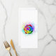 Large, blooming rose with rainbow petals on white background, painted over with splashes of colourful, bright paint. 3d