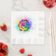 Large, blooming rose with rainbow petals on white background, painted over with splashes of colourful, bright paint. 3d