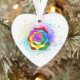 Large, blooming rose with rainbow petals on white background, painted over with splashes of colourful, bright paint. 3d