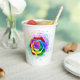 Large, blooming rose with rainbow petals on white background, painted over with splashes of colourful, bright paint. 3d