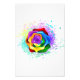 Large, blooming rose with rainbow petals on white background, painted over with splashes of colourful, bright paint. 3d