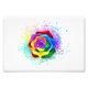 Large, blooming rose with rainbow petals on white background, painted over with splashes of colourful, bright paint. 3d