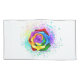 Large, blooming rose with rainbow petals on white background, painted over with splashes of colourful, bright paint. 3d