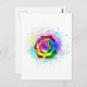 Large, blooming rose with rainbow petals on white background, painted over with splashes of colourful, bright paint. 3d