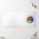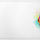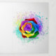 Large, blooming rose with rainbow petals on white background, painted over with splashes of colourful, bright paint. 3d