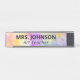 Colourful school teacher desk name plate with your title and specialisation. Personalise it with your own text. To change the font colour, please click the button to edit the design.