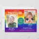 Joint birthday invitations featuring a colourful rainbow background, with vibrant typography and two photos of your choice.