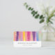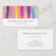 Business cards with an abstract background design. Vibrant stripes in both bold and pastel colours. Pinks, blues, purples and yellow colours combined with faux gold sparkly glitter layered over top.