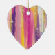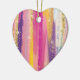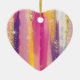 An ornament with an abstract background design. Vibrant stripes in both bold and pastel colours. Pinks, blues, purples and yellow colours combined with faux gold sparkly glitter layered over top
