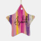 Colourful Rainbow Stripes with Faux Gold Glitter Ceramic Ornament