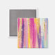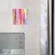 A magnet with an abstract background design. Vibrant stripes in both bold and pastel colours. Pinks, blues, purples and yellow colours combined with faux gold sparkly glitter layered over top.