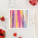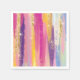 Paper napkins with an abstract background design. Vibrant stripes in both bold and pastel colours. Pinks, blues, purples and yellow colours combined with faux gold sparkly glitter layered over top.