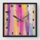 Colourful Rainbow Stripes with Faux Gold Glitter Square Wall Clock