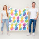 A bright, cheerful fleece blanket covered in rows of watercolor pineapple silhouettes in vibrant rainbow hues of pink, blue, purple, yellow, and green. Each pineapple features a unique gradient colour blend for a playful, artistic effect on a clean white background. A fun tropical throw perfect for kids rooms, dorm decor, beach houses, or anyone who loves pineapple style.