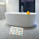 The bathmat is very easy to clean and dry, and feels lovely to stand on. Excellent size as well! The printing is beautiful and the colours vibrant! Much nicer than I expected!