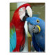 Photo of a friendly Scarlet (red) and Hyacinth (blue) macaws by celeste@khoncepts.com
