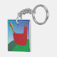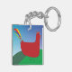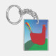 Colourful Red Rooster with Rainbow Tail on Hill Key Ring