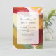 Make a bold statement with this stunning colourful abstract wedding invitation. This one-of-a-kind design features a vibrant palette of reds, oranges, and yellows, creating a truly unique and eye-catching piece. The abstract brushstrokes add a touch of whimsy and personality. This invitation is perfect for the couple who loves colour, art, and a touch of the unexpected. It's sure to leave a lasting impression on your guests and set the tone for a memorable celebration.