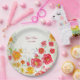 Colourful Red Yellow Pink Garden Floral Wedding Party Paper Plate. Unique, beautiful, stylish design. Easy to be personalised. Font style, size and colours can be changed. Matching items available.