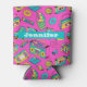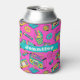 Colourful Retro 80s Girly Neon Pink Pattern Name Can Cooler