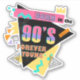 Colourful retro 90's laptop contour sticker with "Born in the 90's Forever Young."