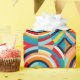 This bold and colourful retro-inspired wrapping design features concentric bullseye circles in an eye-catching array of vivid contrasting colours. With dynamic patterns that evoke a sense of playful energy, this wrapping paper is perfect for adding a lively touch to any creative project. This striking design brings a pop of vibrant personality wherever it’s used. Some creative uses for wrapping paper could be to use it as drawer liners, for accents for scrapbooking or as unique, vibrant book covers. You could even frame it and use it as wall art, or for your origami craft projects.