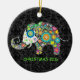 Colourful Retro Floral Elephant Illustration Ceramic Ornament