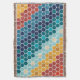 Colourful Retro Floral Mosaic Hexagon Pattern Throw Blanket