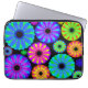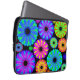 Colourful Retro Flower Patterns on Black Backgroun Laptop Sleeve