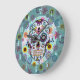 Colourful Retro Flowers & Diamonds Skull Design Large Clock
