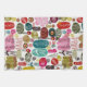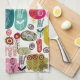 Colourful Retro Hand Drawn Flowers Illustration Tea Towel