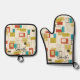 Colourful Retro Mid-Century Geometric Pattern Oven Mitt & Pot Holder Set