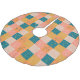This stylish holiday Christmas tree skirt features a cute and colourful retro mid century modern patchwork pattern in a fun vintage colour palette of teal, mustard, and coral.