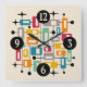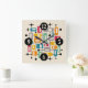 Colourful Retro Mid Century Modern Atomic Abstract Square Wall Clock