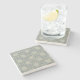 The coasters are gorgeous, a quality feel and heavy weight. They look like a precious archeological find. A rustic stone juxtaposed with a modern floral black and white print. I like the way the print goes slightly imperfect on the cut stone edges giving them a kind-of natural beauty.