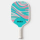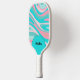 Colourful Retro Pink Aqua with Name Pickleball Paddle