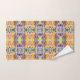 Bath Towel Set Of Three Sizes decorative bathroom amenity and home furnishing decor accessory printed with a Colourful Retro Psychedelic Kaleidoscope Abstract art design four part mirrored image repeating pattern graphic artistic illustration by TheFabricSeal print on demand shop at Zazzle.com #ZazzleMade ©️Original. https://www.zazzle.com/store/thefabricseal