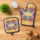 Colourful Retro Psychedelic Kaleidoscope Abstract Oven Mitt & Pot Holder Set