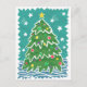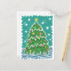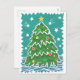 Colourful Retro Stamp Style Christmas Tree Holiday Postcard