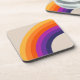 Abstract illustration of retro style rainbow design in yellow, purple, blue, and orange colours on beige background