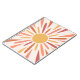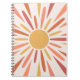 Abstract retro style sunshine illustration with pink, brown, orange, purple, and yellow sun rays decoration on pastel pink background for summer lovers.