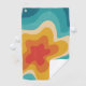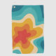 Abstract illustration of colourful retro style swirl design in blue, turquoise, beige, orange, red and mustard colours